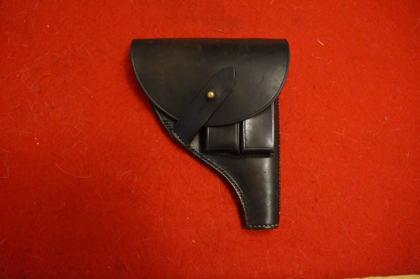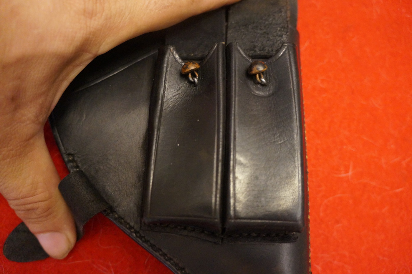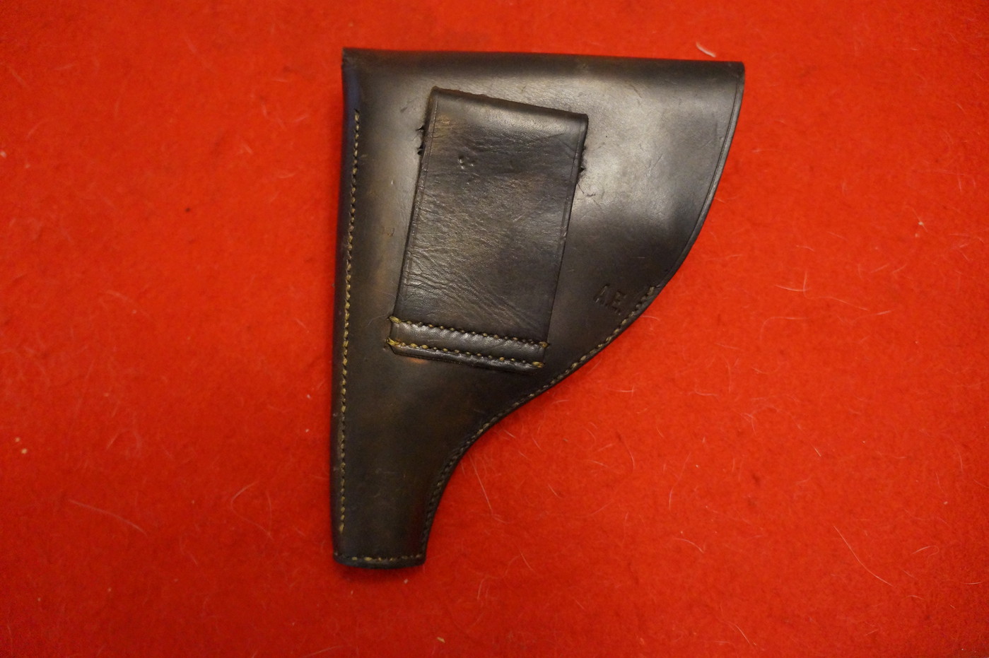 Португальская кобура 1915-го года к пистолету Саваж 1907 португальского и французкого контрактов. Во время Первой Мировой португальцы купили 2000 и еще 27000 французы. Но кобуры делала к ним португальская фирма А.Е. Обычно эти кобуры желтого цвета, под пеxотную форму, а эта - черная, ИМXО - морячки. Соxран - практически идеальный. А с учетом того, что ей больше 100 лет... В общем за $20 нельзя было не взять.
